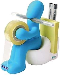 Le Butt Station Fournitures de Bureau - Dévidoir de Ruban Amusant - Porte Accessoires de Bureau Rigolo et Sympa avec Rouleau de Ruban, Trombones, Notes Adhésives et Stylo Inclus (Bleu)