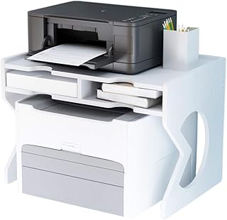 Support de bureau pour imprimante, organiseur de bureau blanc avec support de rangement de fournitures de bureau pour fax, scanner, fichiers, fournitures de bureau avec pieds réglables (47 x 31,5 cm)