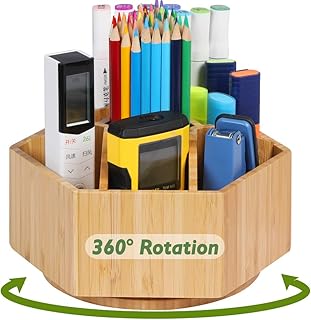 Organiseur de fournitures de bureau rotatif en bambou, 7 sections multiples pour fournitures de bureau, fournitures de bureau en bambou