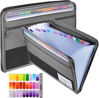 Dossier de documents A4 13 compartiments, Dossier de poche pour documents dossier de classement dossier de tri avec fermeture à glissière dossier en toile et dossier pour les scolaires de bureau