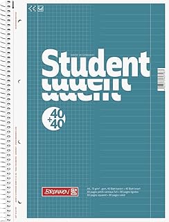 Brunnen 1067928 Lot de 5 blocs-notes pour étudiant (A4, quadrillé, linéature 28, 70 g/m², 80 feuilles)