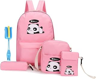 4pc Sac à Dos Scolaire De Rangement Femme Fille en Toile Sac De Voyage Grande Capacité en Toile étudiant Sac D'épaule Backpack Cartable + Sacs à Bandoulière + Mini-Sacs