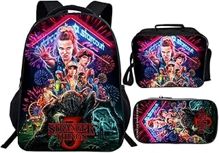Cartable Stranger Things, Sac à Dos Stranger Things Fille Garçon Enfant Unisexe Cartable 3 en 1 Sac de Loisir + Sac à Lunch + Trousse Scolaire Étudiant Sac d'ecole Maternelle (1)