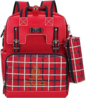 Elonglin 2 Pcs Sac à Dos Enfant Impermeable Sacs d'ecole Primaire Unisexe Cartable Sac à Dos Scolaire en Smilicuir + Sac de Stylo pour Adolescent Étudiant Loisir Voyage randonnée Rouge