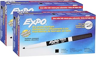 Expo 86001 Marqueur effaçable à sec à faible odeur, noir, pointe fine, encre à séchage rapide, 2 paquets de 12 marqueurs, 24 marqueurs au total