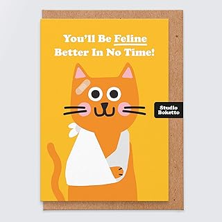 Cartes Get Well pour femme - Get Well Soon Card - Get Well Soon Card Operation - Jambe brisée - Bras cassé - Homme - Femme - Ami - Get Well Soon Card Drôle - Chat get Well Soon Card - Feline Fine
