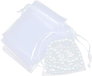 100 Pièces Sachets Pochettes, Ouinne Cadeau en Organza Sacs Organza de Poche Mariage Bijoux (Blanc)
