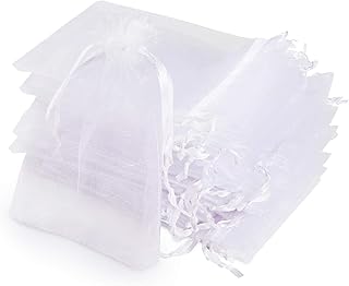 100 pcs 10 * 15cm Sachets Pochettes Cadeau, Organza Sachets Blancs en Organza pour Bijoux, Cadeaux