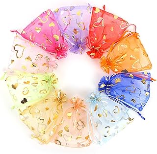 Kumkey 100x Sachets en Organza Pochettes Sachet Bijoux Sac Cadeau Organza Cordon de Serrage Sacs Chocolat Bonbons des Petits Bijoux Sac pour Candy Bar Mariage Anniversaire Baptême Noël Partie (Coeur)