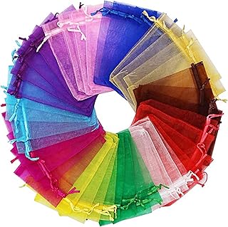 100 Pcs Sachets Pochettes Cadeau en Organza avec Rubans pour Bijoux Mixte Couleur sachets