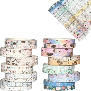 Dzmuero Masking Tape Bullet Journal,24Rolls Washi Tape,Ruban de masquage en feuille dor masquage Ruban décoratif pour artisanat Ruban de masquage Washi Scrapbook Impression pour cadeau Emballage