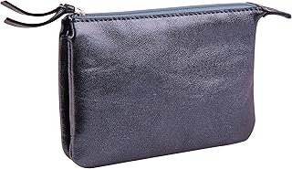 Clairefontaine 410047C - Une petite pochette plate (trousse) 2 compartiments Kleo-Pathra 13x9 cm en véritable cuir d'agneau, Argent